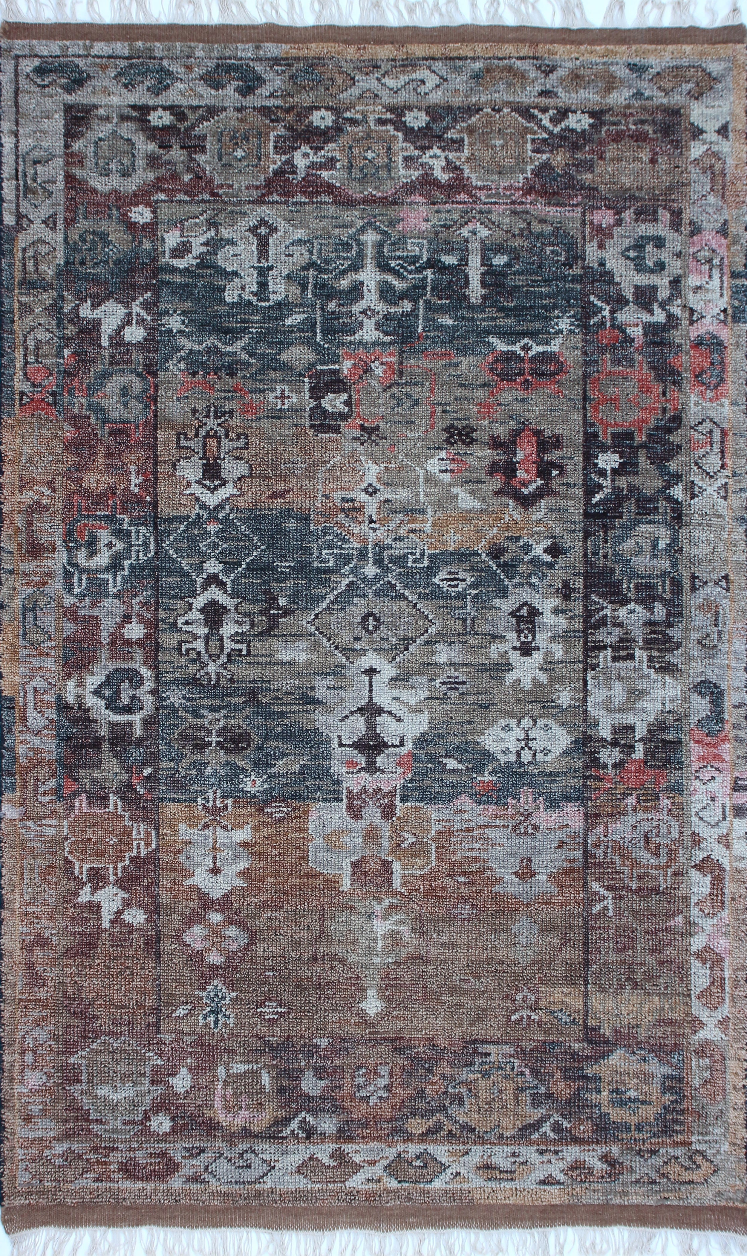 Crafted with premium-quality hand-carded wool, this exquisite rug is hand-knotted to evoke a transitional charm, featuring captivating vintage blues that seamlessly unify your room's decor.