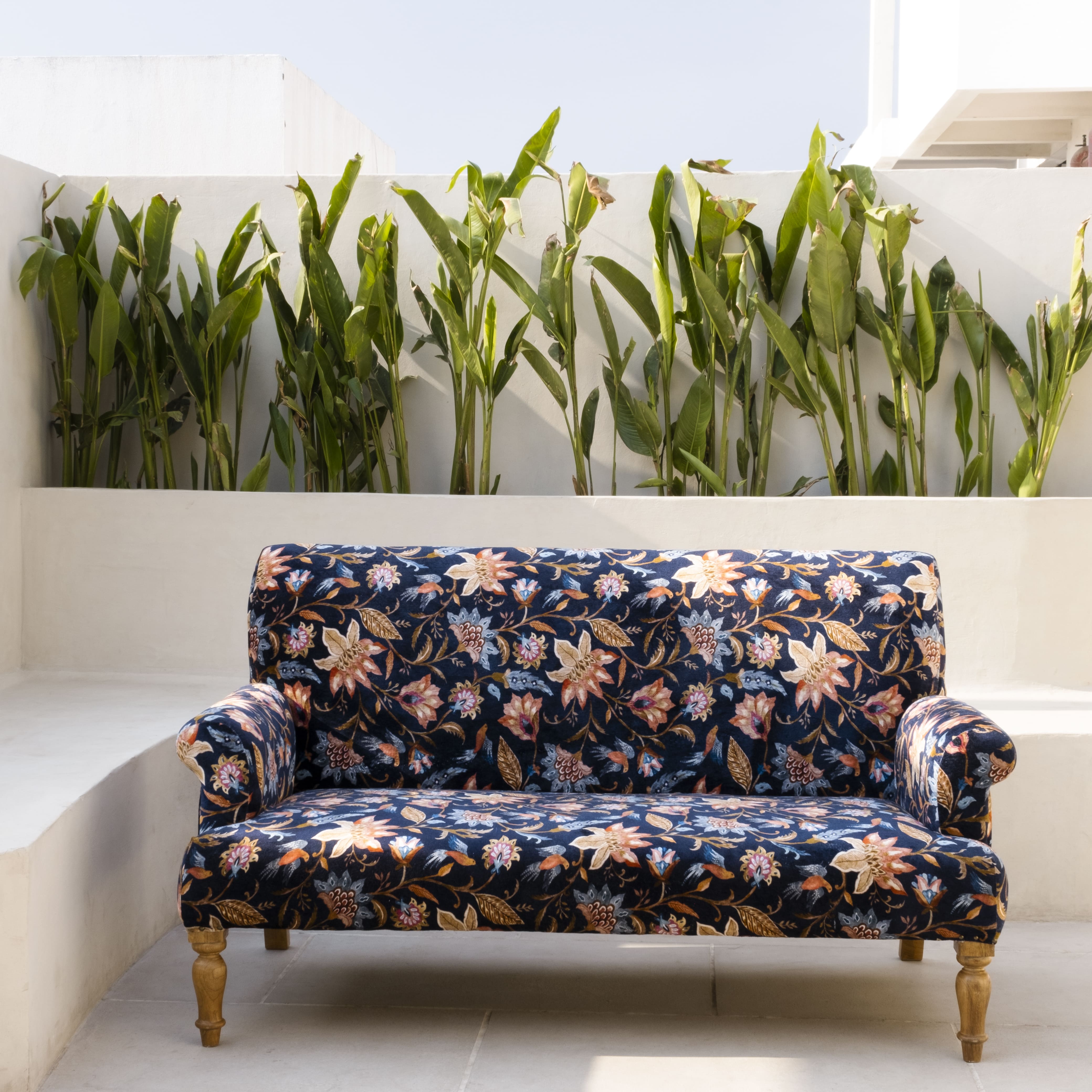 Relaxed yet refined. Comfortable yet full of character. Our Oslo Sofa is draped in printed velvet and crafted in the rustic warmth of oakwood. Its sturdy structure and plush cushioning envelop you in comfort you'll want to come home to.