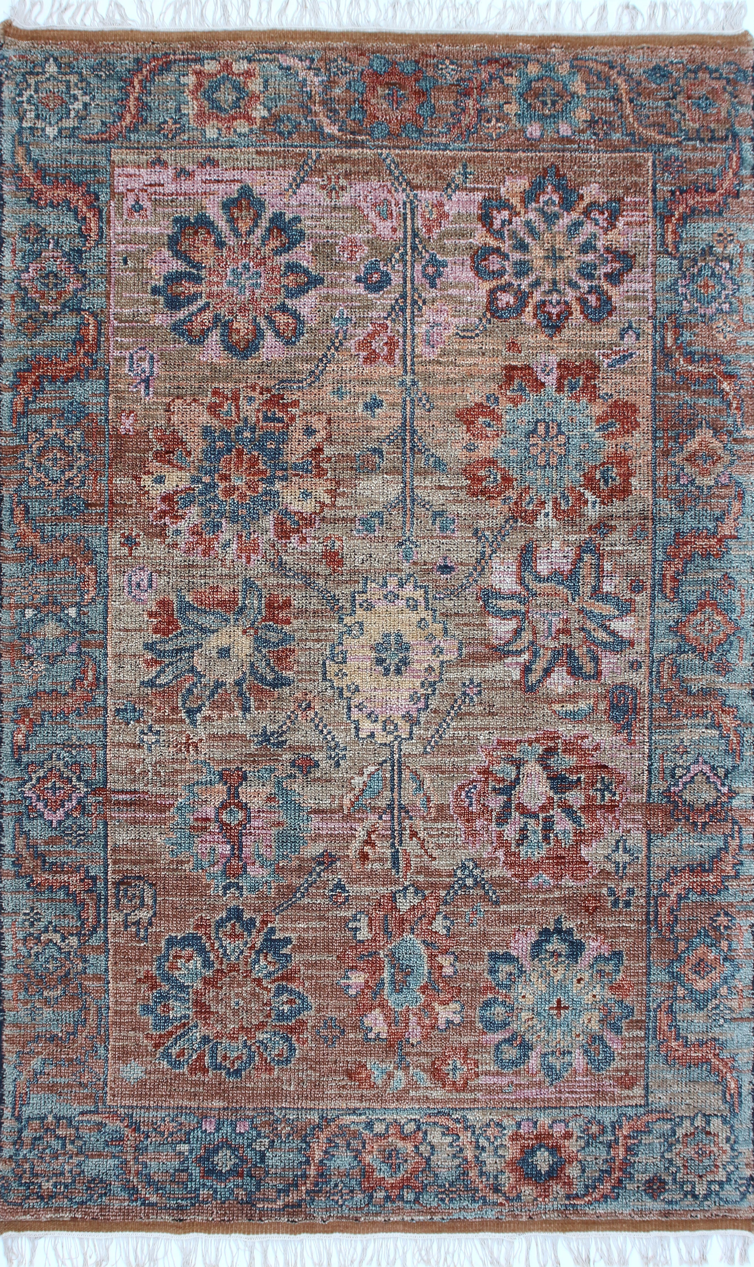 Hand-knotted using premium-quality hand-carded wool, this exquisite rug evokes a transitional charm, boasting stunning vintage blues.