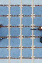 Hand tufted in 100% New Zealand wool, Terra features a structured grid set against a soft blue base. The matte wool finish and balanced tonal accents create a refined yet grounded foundation for modern interiors.