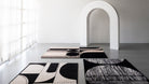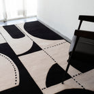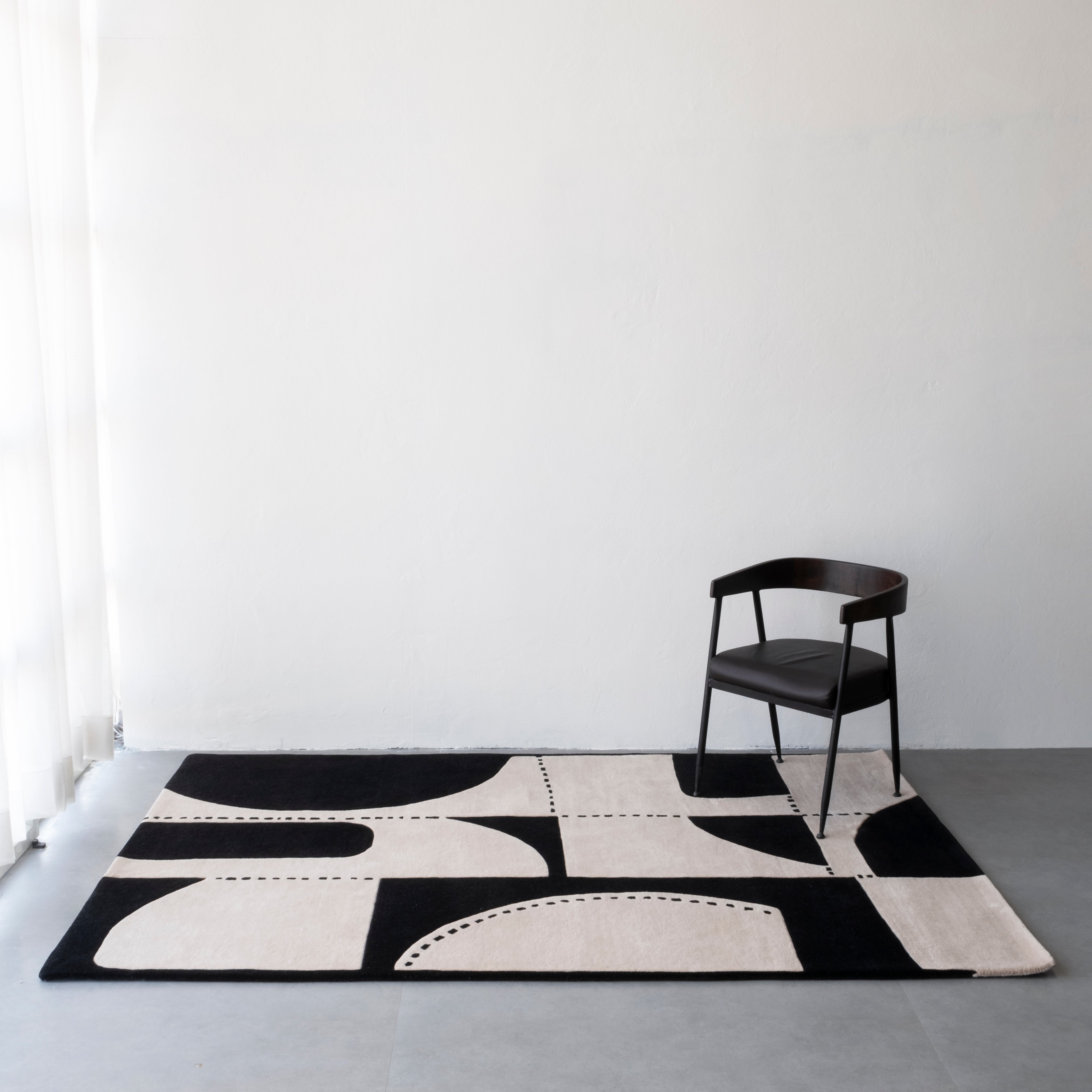 This modern black and white rug, adorned with sleek linear patterns, serves as a gateway to minimalistic beauty. Hand-tufted purely from New Zealand wool, it provides sheer luxury and comfort.