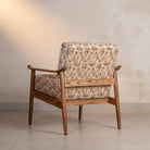 Named after India's Pink City and its rich textile heritage, The Jaipur marries traditional craftsmanship with mid-century form. Upholstered in soft velvet with delicate botanical motifs in warm neutrals, the fabric's intricate floral patterns are beautifully framed by clean lines of solid wood. Comfortable enough for long conversations, elegant enough to stand alone, The Jaipur brings the warmth of Indian design sensibility into contemporary spaces - a chair that honors heritage while fitting seamlessly into how we live today.