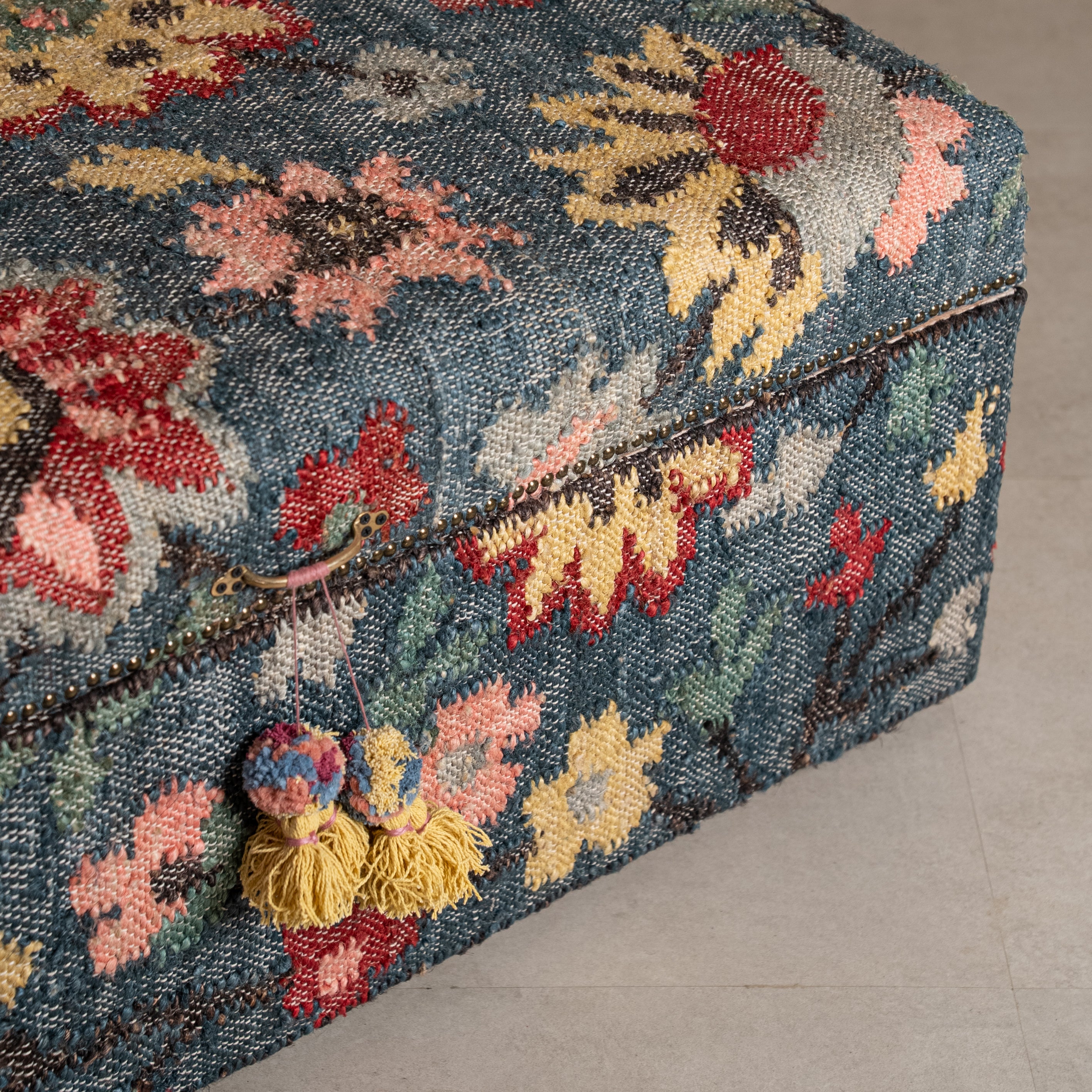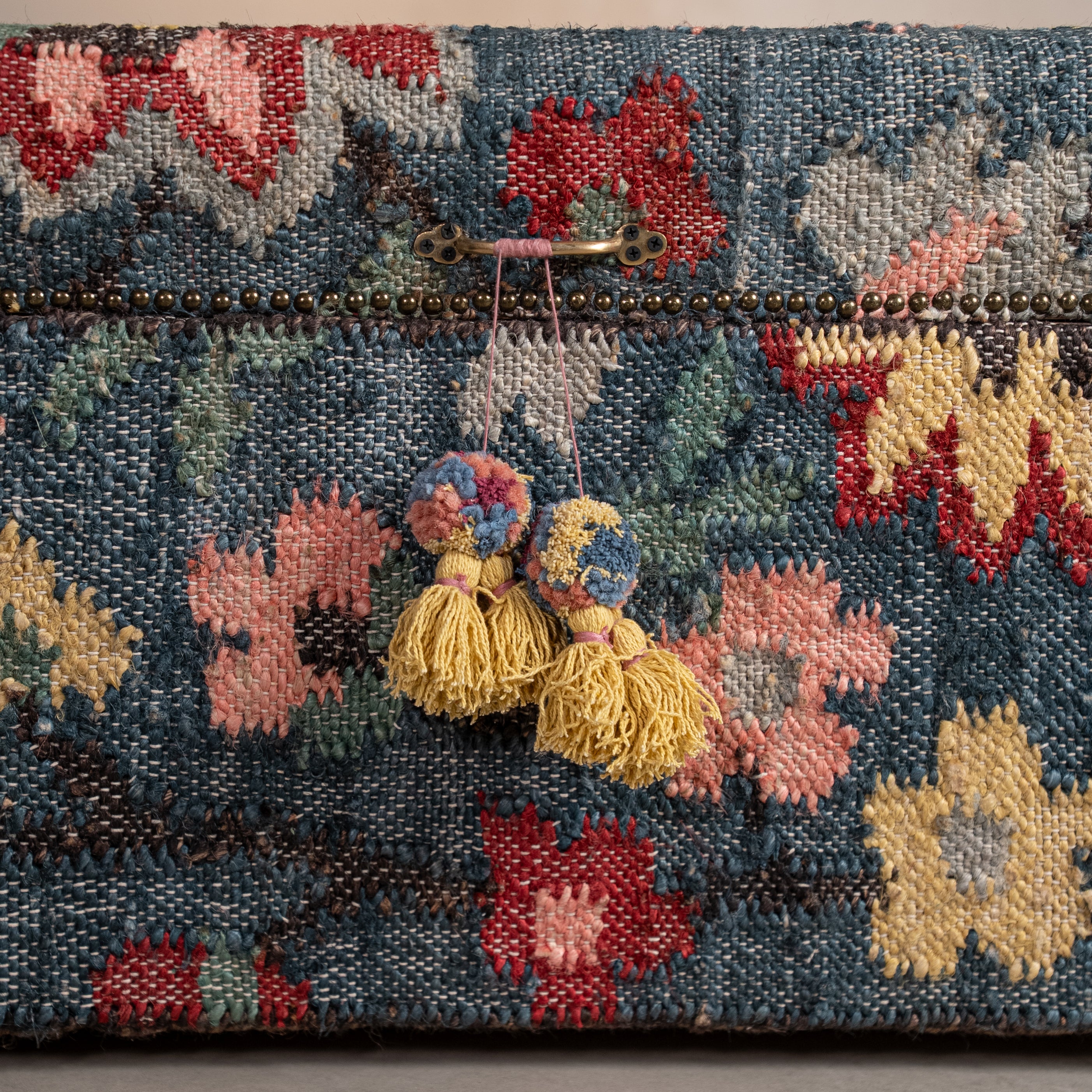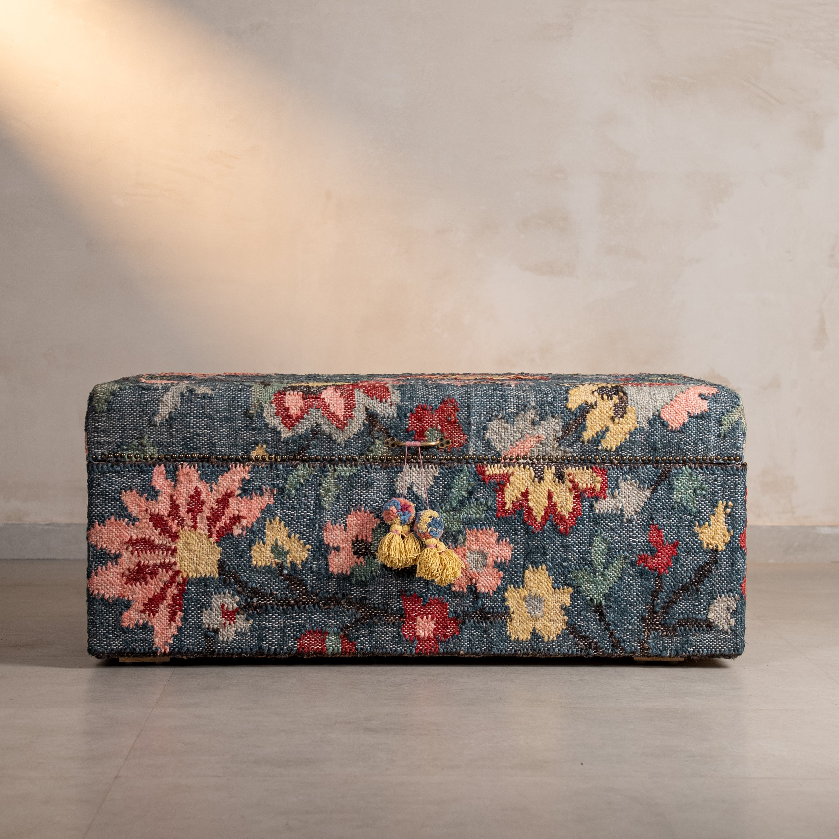 In Indian homes, a sandook has always been more than storage - it's a keeper of heirlooms. Our Sandook reimagines this tradition, upholstered entirely in handwoven jute where intricate floral patterns emerge thread by thread during the weaving process itself. Set upon a solid wood base built to last generations, The Sandook serves as both practical storage and a celebration of India's textile heritage. A place to keep extra throws, seasonal textiles, or family keepsakes - furniture designed to hold what matters.