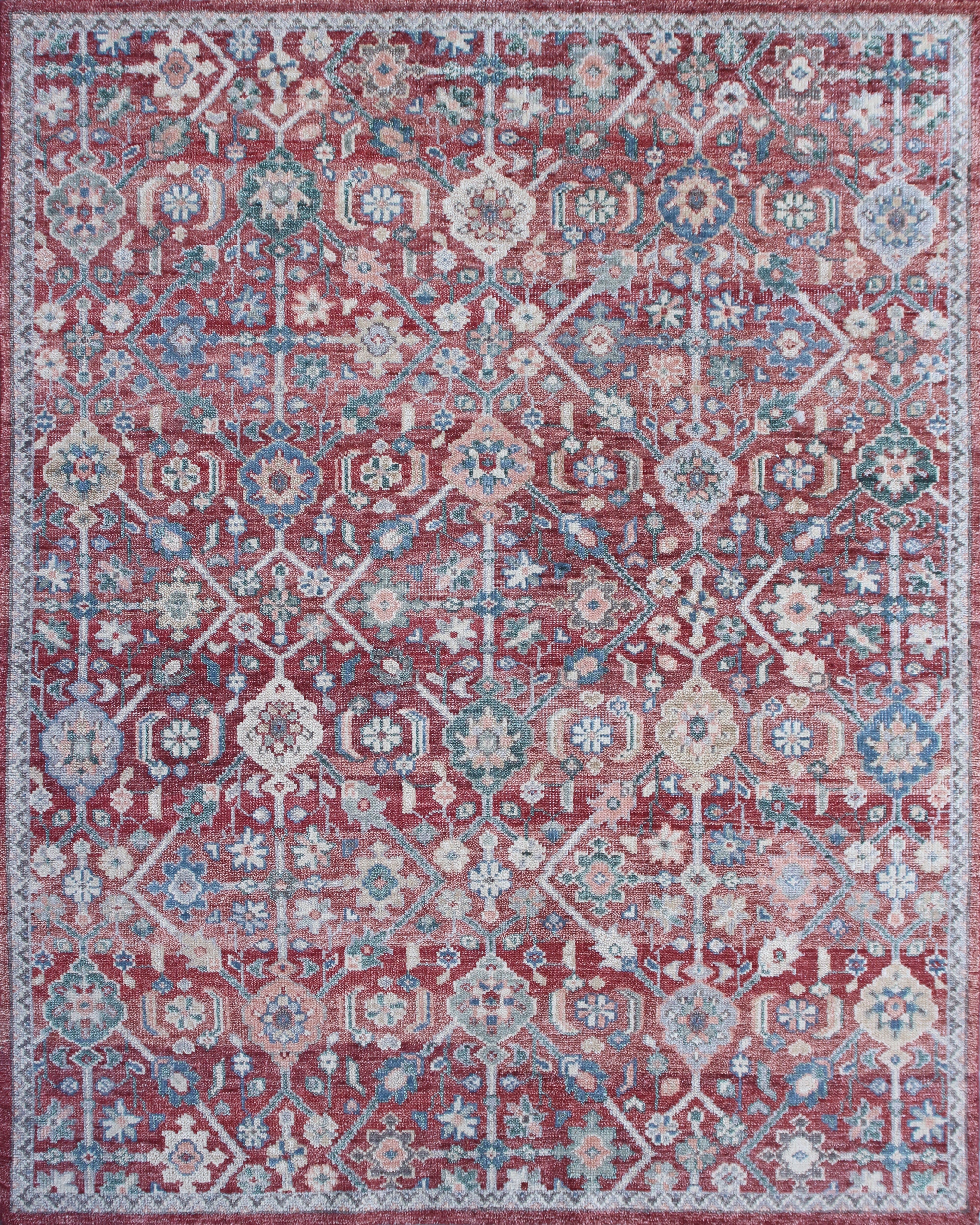 Hand-knotted with high-quality wool, 'Patrona' exudes tranquilly with its muted red-taupe tones and intricately detailed patterns.